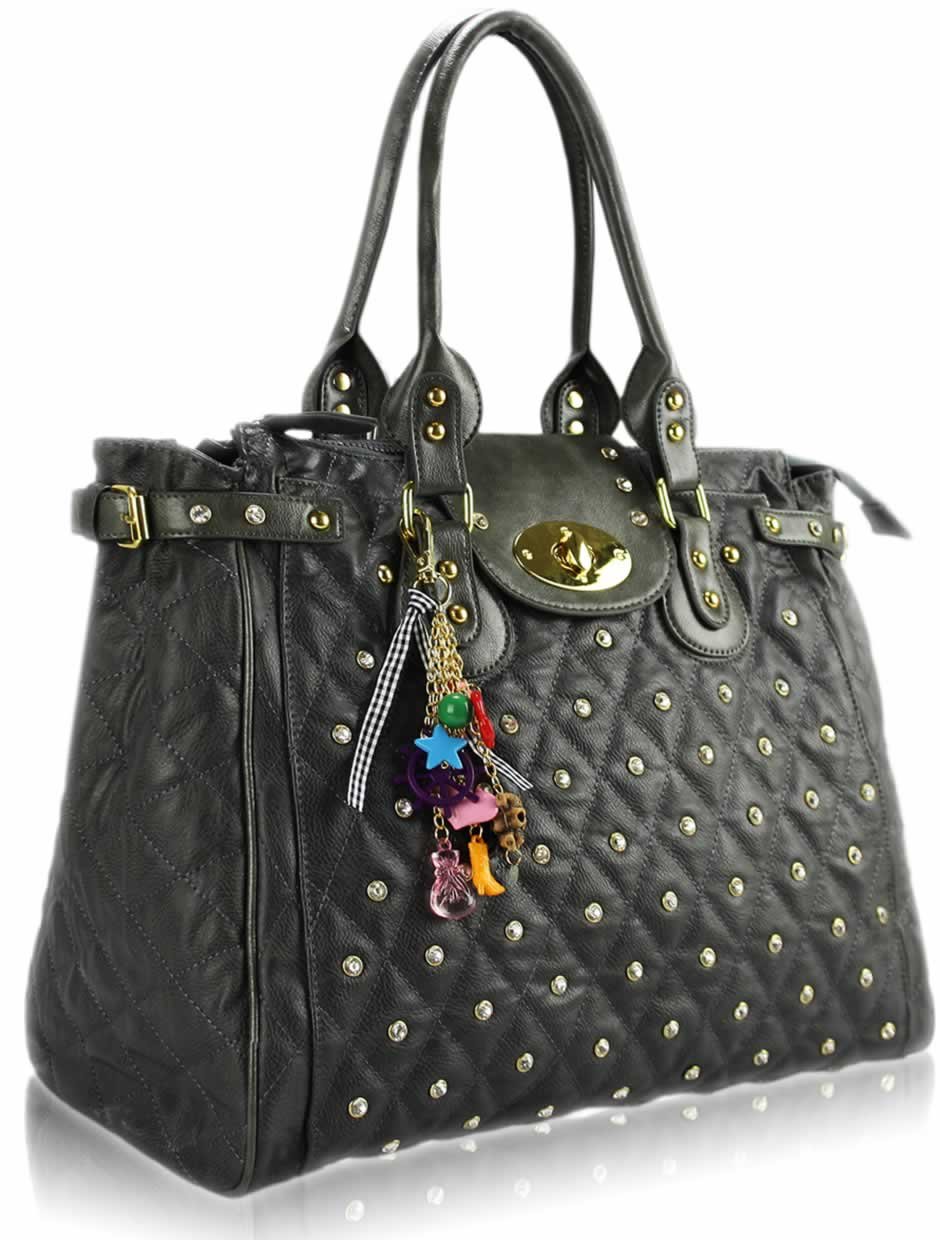 LS4001 - Grey Dual Handle Tote Handbag With Crystal Decoration