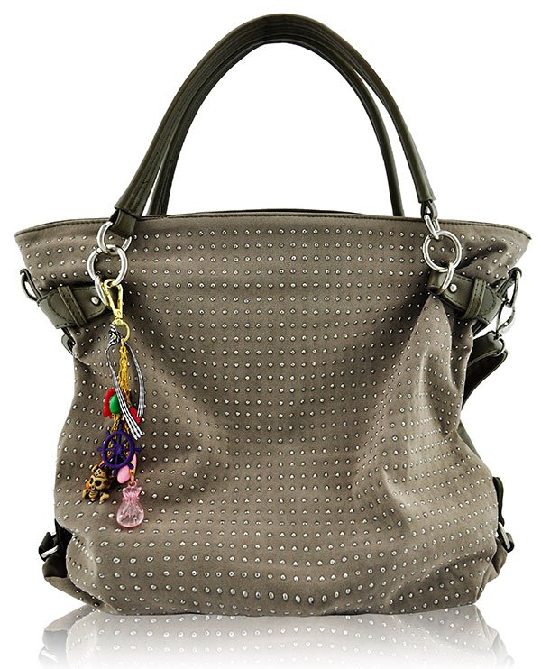 LS8001 - Grey Diamante Tote Shoulder Handbag