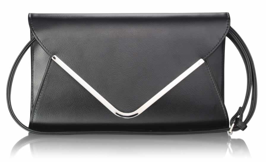 LSE00166A - Black Large Flap Clutch purse