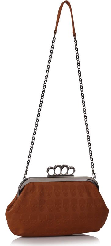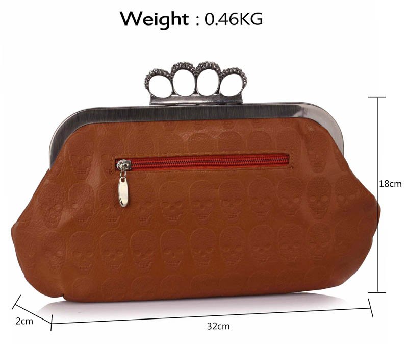 LSE00196 - Brown Sparkly Crystal Satin Evening Clutch