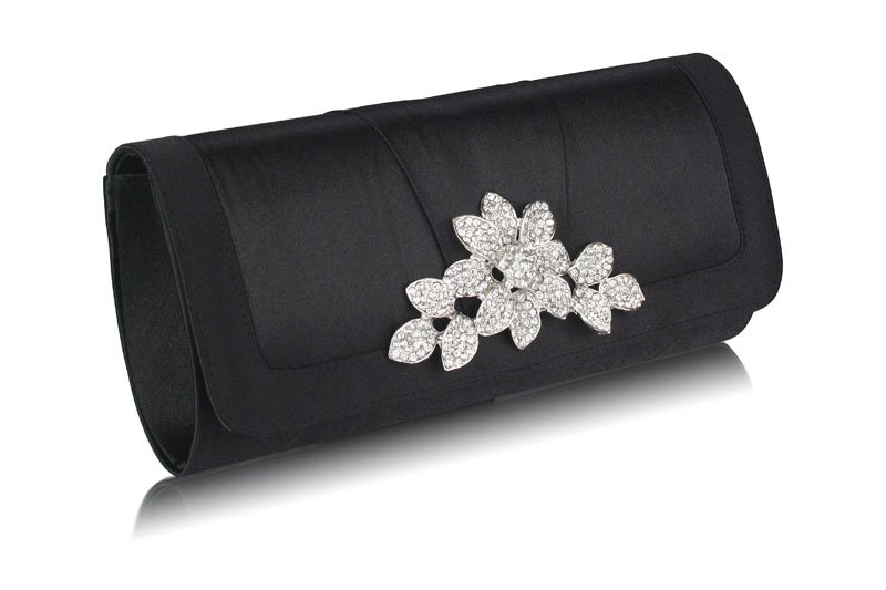 LSE0094 - Black Crystal Flower Evening Clutch Bag