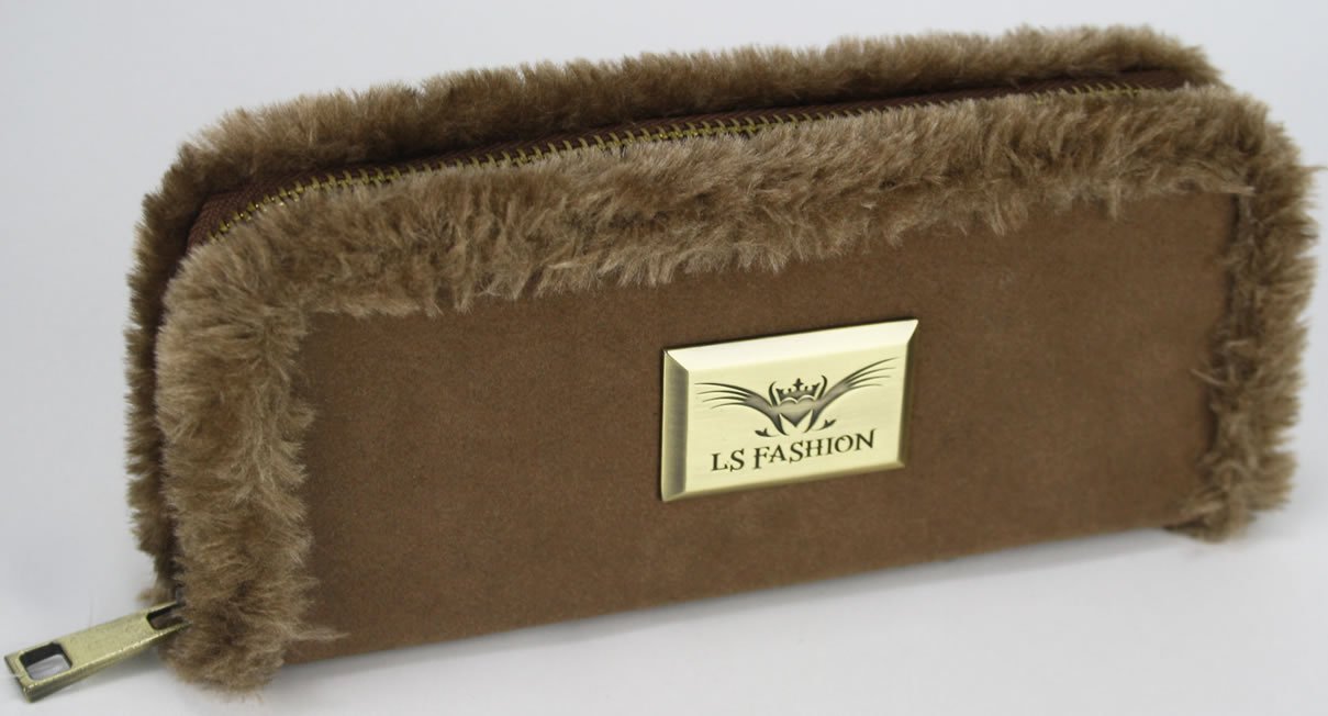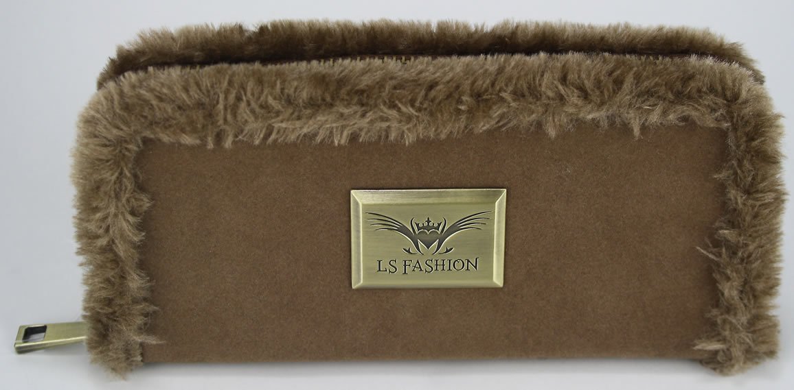 LSP1037-L.S Sand Purse/Wallet with Faux Sheepskin Detail