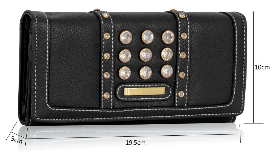 LSP1041 - Black Purse/Wallet With Crystal Decoration