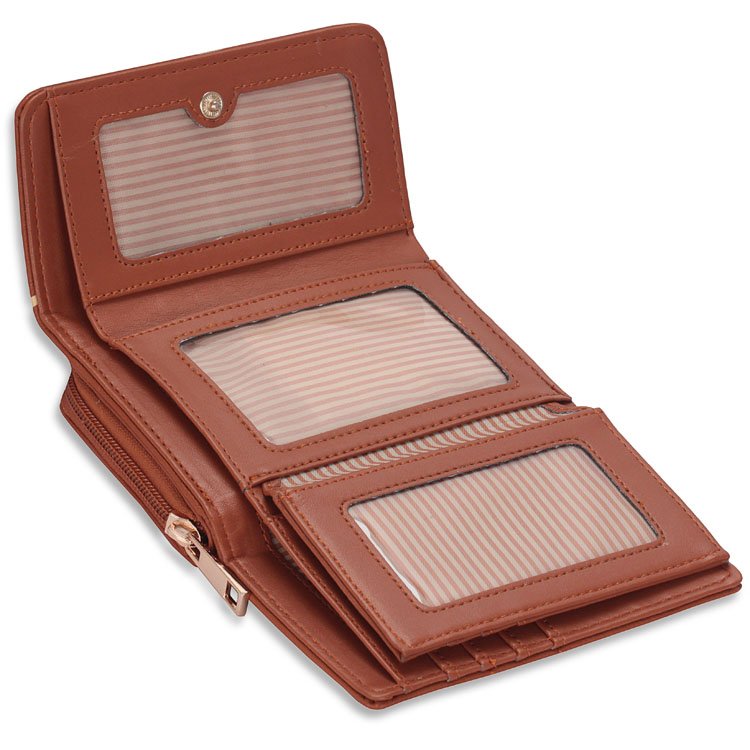 Interior : Zippered pocket , card slots, open slots, clear slots.