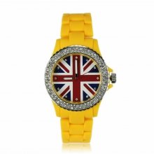LSW008-Wholesale & B2B Yellow Diamante Union Jack Watch Supplier & Manufacturer