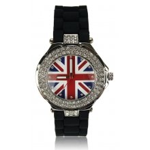 LSW009-Wholesale & B2B Black Diamante Union Jack Watch Supplier & Manufacturer