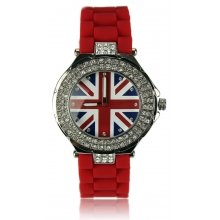 LSW008- Wholesale & B2B Red Diamante Union Jack Watch Supplier & Manufacturer